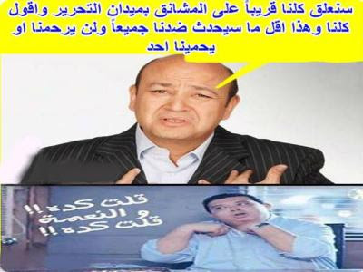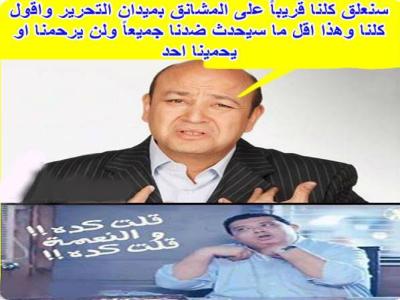 وزير الدفاع و الداخلية احذر الجميع صراحة وبوضوح لو حضراتكم منتظرين احد من الخارج لحل المشكلة مع الأخوان وظل الأخوان على رفضهم فأعلموا انكم لن تكملوا في الحكم وسنعلق كلنا قريباً على المشانق بميدان التحرير واقول كلنا وهذا اقل ما سيحدث ضدنا جميعاً ولن يرحمنا او يحمينا احد ” الضعف في المرحلة القادمة هزيمة