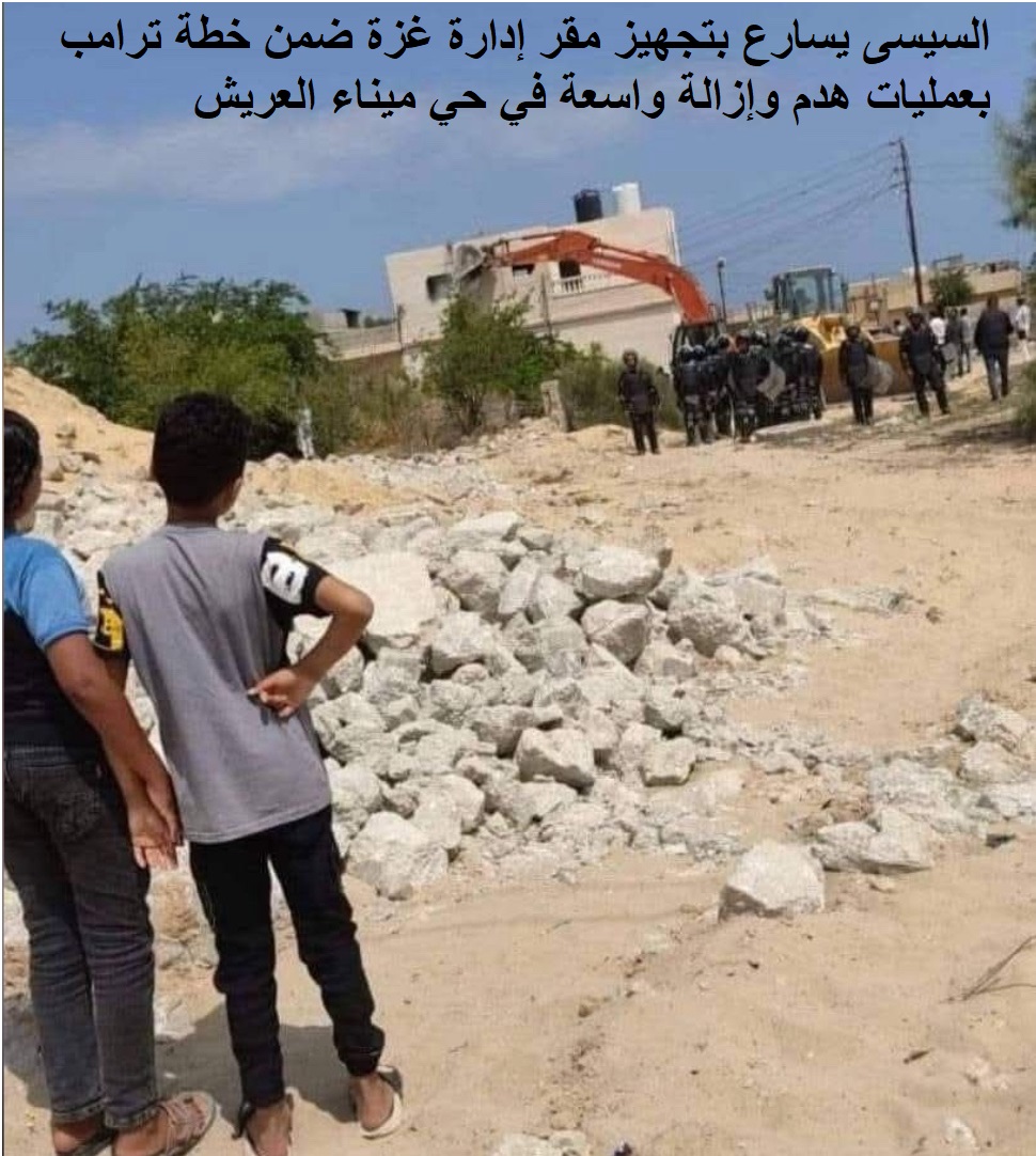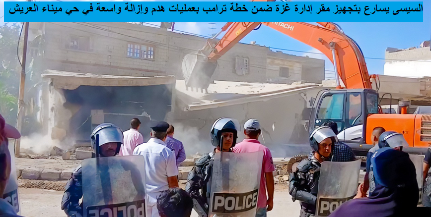 *السيسى يسارع بتجهيز مقر إدارة غزة ضمن خطة ترامب بعمليات هدم وإزالة واسعة في حي ميناء العريش