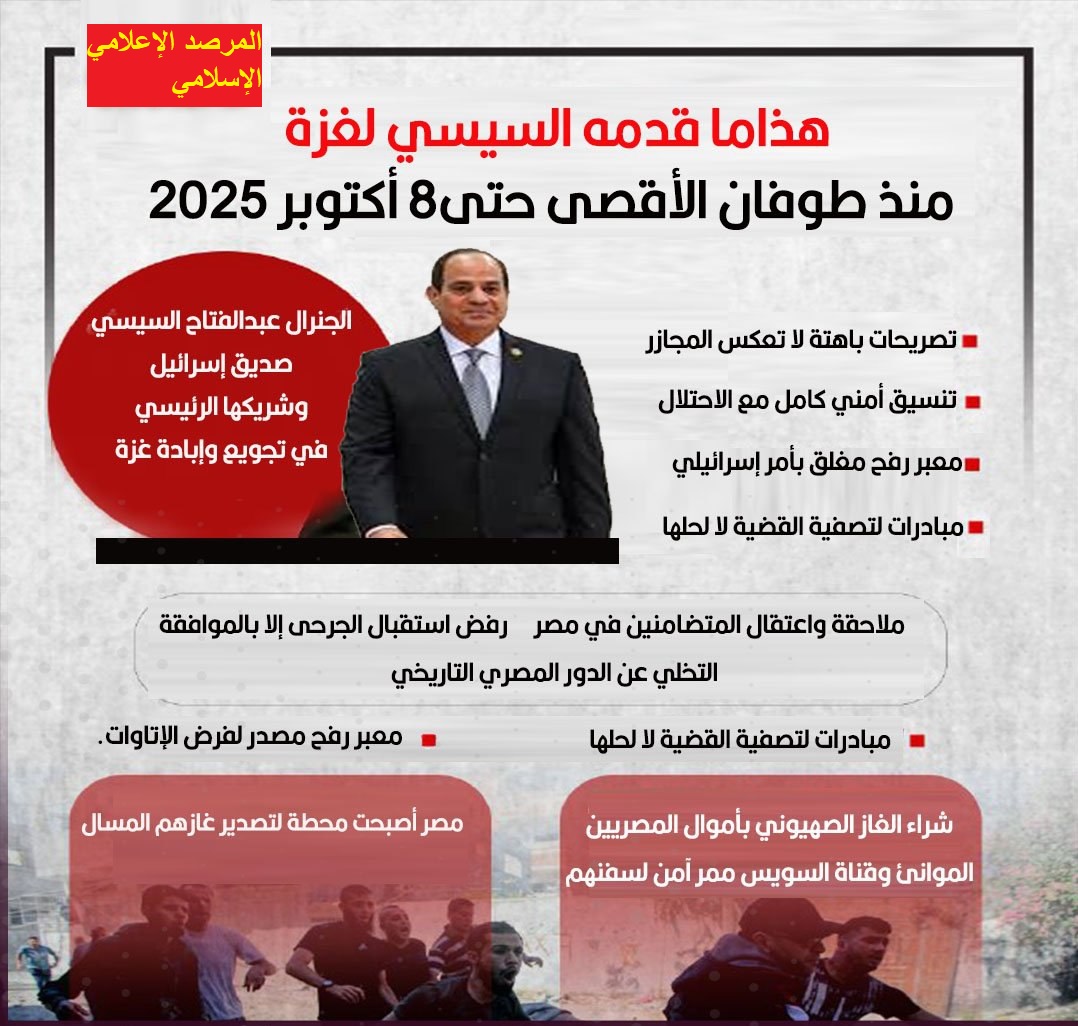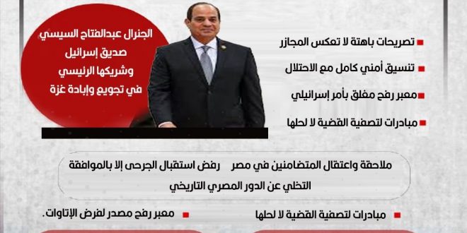 الإنفوجراف التالي يرصد مواقف السيسي منذ البداية حتى الآن من حرب غزة..
