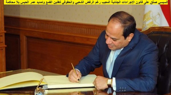 *السيسي صدّق على قانون الإجراءات الجنائية المعيب رغم الرفض الشعبي والحقوقي لتقنين القمع وتمديد عمر الحبس بلا محاكمة