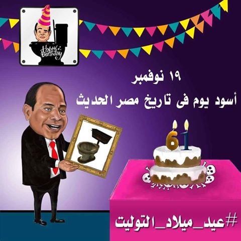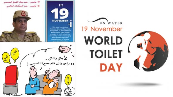 ويتوافق عيد ميلاد السيسي اليوم 19 نوفمبر مع اليوم العالمي للمرحاض (وفقاً للأمم المتحدة، فإنّ التاسع عشر من نوفمبر من كُلّ عام حوّل يوماً للمراحيض العالمي، في محاولة من المجتمع الدولي للبحث عن طريقة لحفظ كرامة الإنسان بتوفير مرحاض لكلّ شخص، كحقّ من أبسط الحقوق الآدميّة.