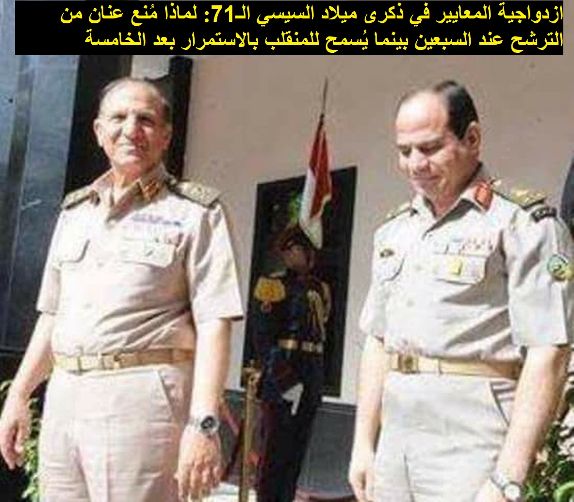 *ازدواجية المعايير في ذكرى ميلاد السيسي الـ71: لماذا مُنع عنان من الترشح عند السبعين بينما يُسمح للمنقلب بالاستمرار بعد الخامسة والسبعين؟