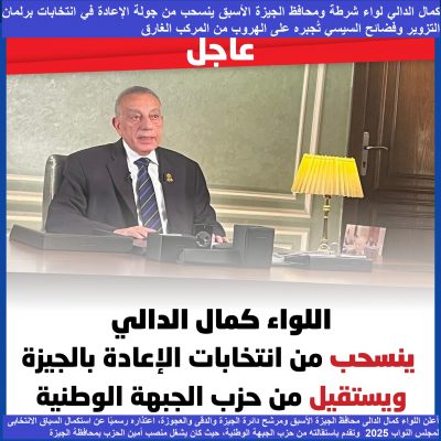 في ضربة قوية لشرعية “مسرحية” الانتخابات البرلمانية التي هندستها الأجهزة الأمنية بدقة، جاء قرار اللواء كمال الدالي، محافظ الجيزة الأسبق وأحد أبرز رجالات النظام، بالانسحاب من جولة الإعادة واستقالته من حزب “الجبهة الوطنية”؛ ليُسقط ورقة التوت الأخيرة عن العملية الانتخابية برمتها.