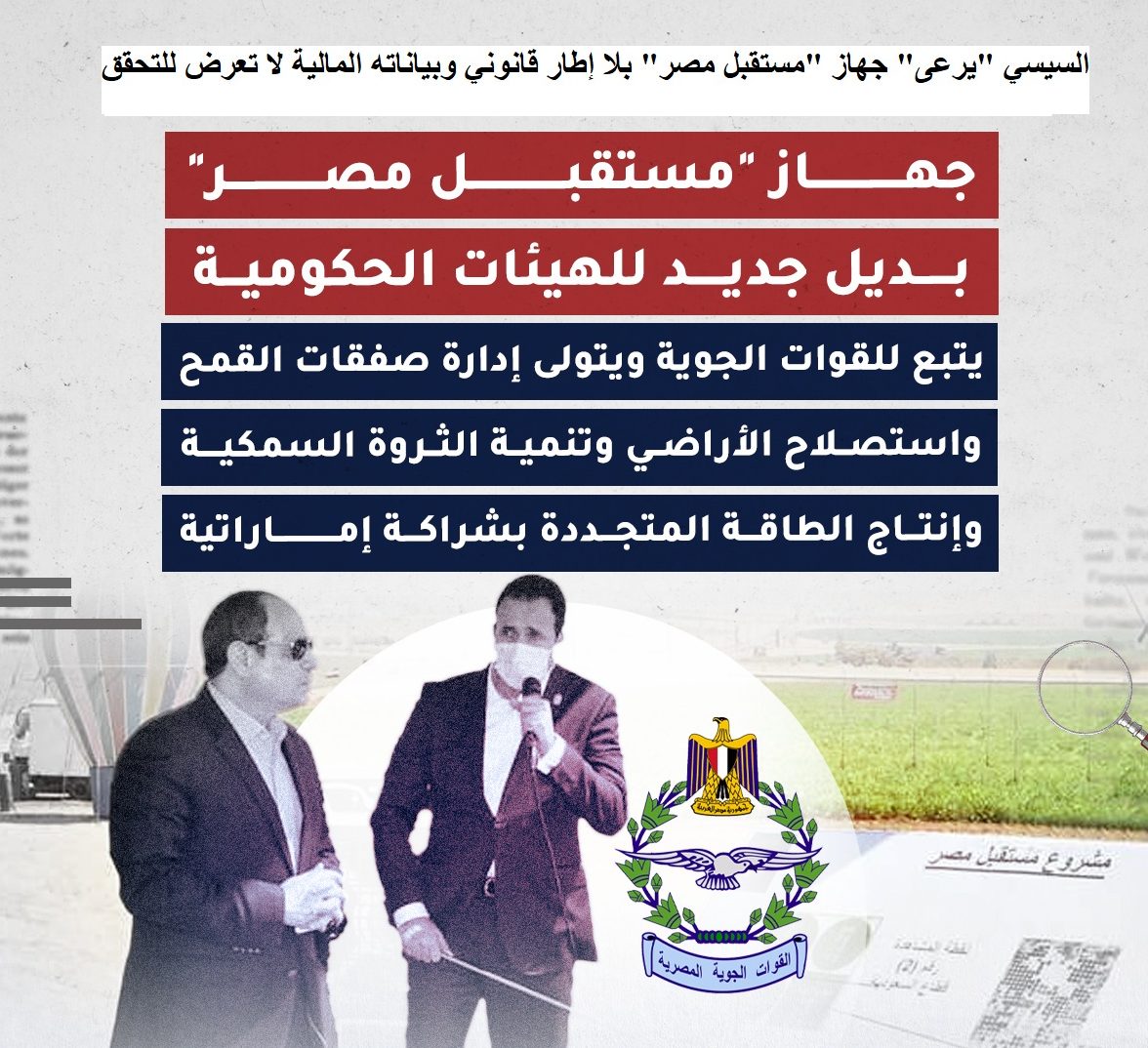 *جهاز (مستقبل مصر) “يرعاه” السيسي بلا إطار قانوني وبياناته المالية لا تعرض للتحقق