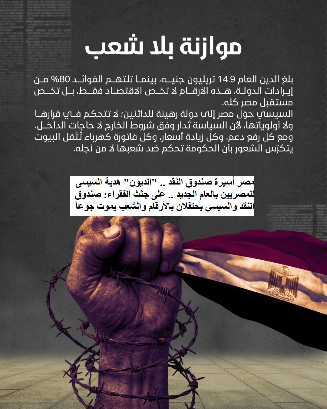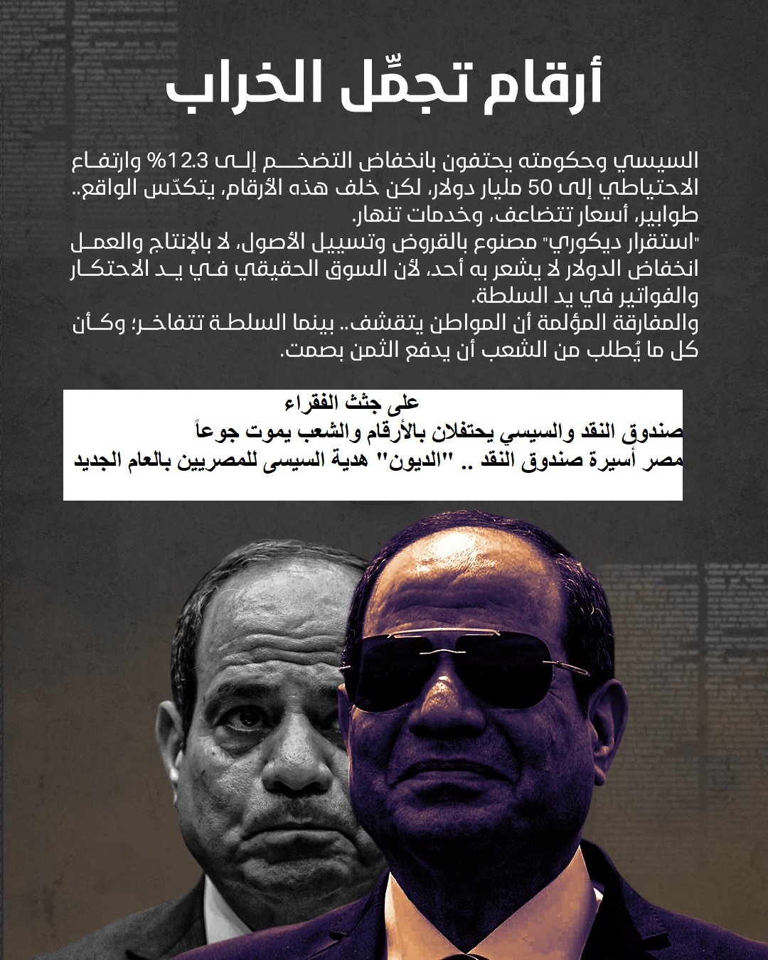 مصر أسيرة صندوق النقد “الديون” هدية السيسى للمصريين بالعام الجديد وعلى جثث الفقراء: صندوق النقد والسيسي يحتفلان بالأرقام والشعب يموت جوعاً.. الخميس 1 يناير 2026م .. معدلات فقر مرعبة وديون غير مسبوقة فى 2025 واستحواذ عيال زايد على موانى ومستشفيات وبنوك وشركات أسمدة والبقية تأتى