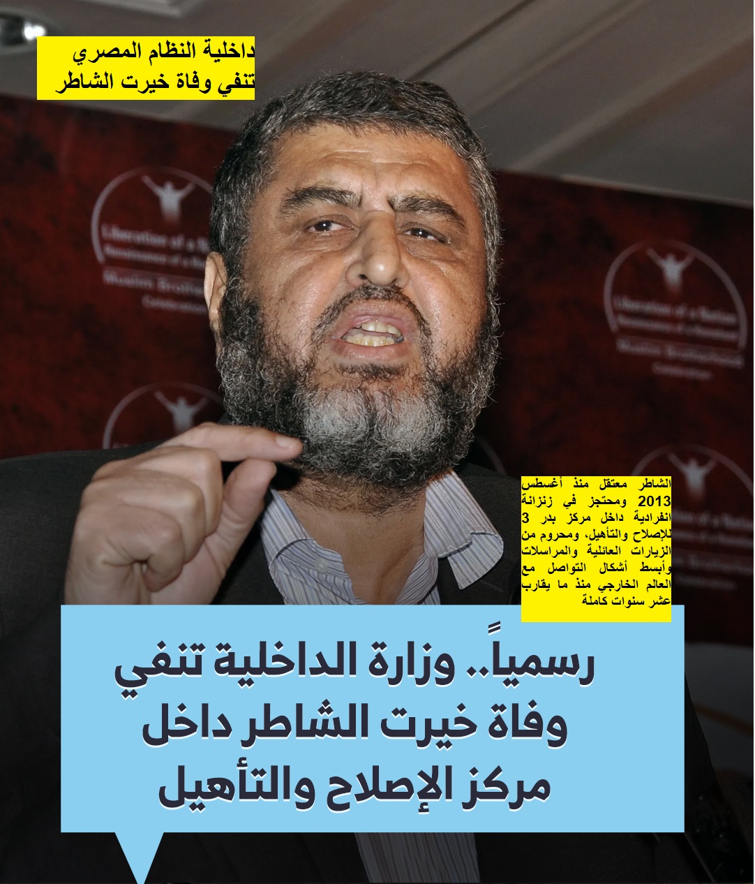 *داخلية النظام المصري تنفي وفاة خيرت الشاطر وحقوقيون يطالبون بفتح الزيارات