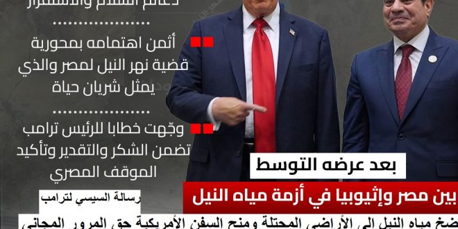 *طلبات ترامب من السيسي مقابل حل أزمة سد النهضة ضخ مياه النيل إلى الأراضي المحتلة ومنح السفن الأمريكية حق المرور المجاني عبر قناة السويس