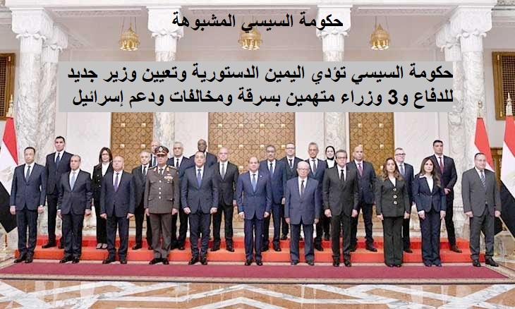 حكومة السيسي تؤدي اليمين الدستورية وتعيين وزير جديد للدفاع و3 وزراء متهمين بسرقة ومخالفات ودعم إسرائيل.. الأربعاء 11 فبراير 2026م.. النظام المصري يرتكب ثاني أخطائه في ملف الطاقة ويبيع أكبر محطة رياح للإمارات