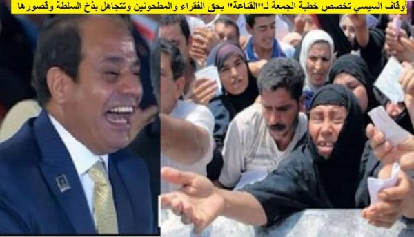*أوقاف السيسي تخصص خطبة الجمعة لـ”القناعة” بحق الفقراء والمطحونين وتتجاهل بذخ السلطة وقصورها