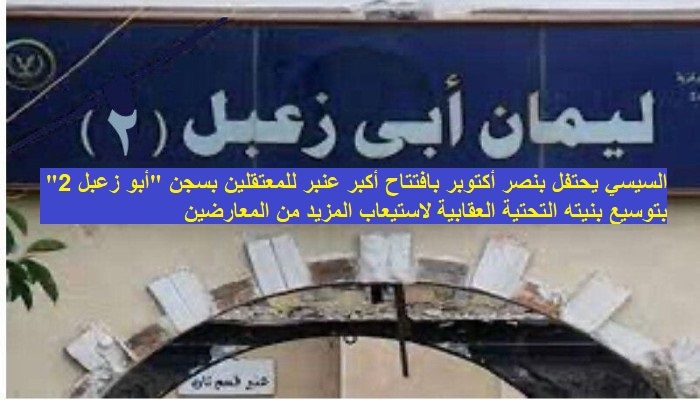 *السيسي يحتفل بنصر أكتوبر بافتتاح أكبر عنبر للمعتقلين بسجن “أبو زعبل 2” لاستيعاب المزيد من المعارضين