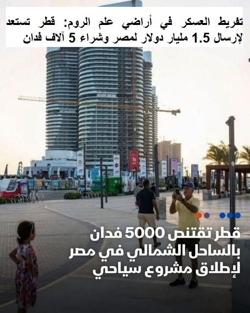 * تفريط العسكر في أراضي علم الروم: قطر تستعد لإرسال 1.5 مليار دولار لمصر وشراء 5 آلاف فدان
