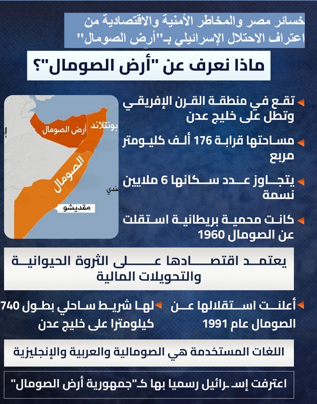 * خسائر مصر الأمنية والاقتصادية من اعتراف الاحتلال الإسرائيلي بـ”أرض الصومال”