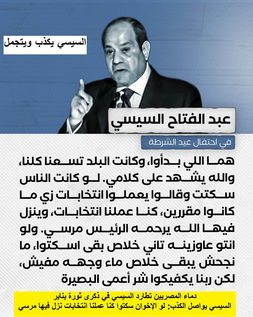 *دماء المصريين تطارد السيسي في ذكرى ثورة يناير… والكذب سلاحه!