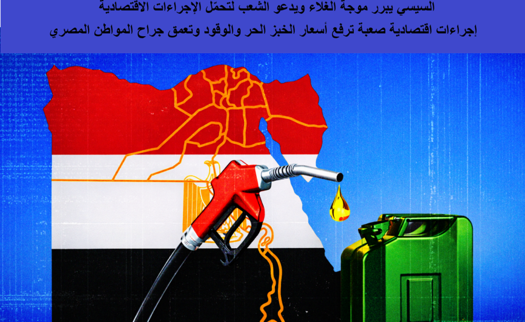 برّر المنقلب عبد الفتاح السيسي قرار الحكومة رفع أسعار بعض المنتجات البترولية، داعياً المصريين إلى تحمّل تبعات الإجراءات الاقتصادية الصعبة، في وقت تشهد فيه البلاد موجة غلاء غير مسبوقة طالت معظم السلع والخدمات، وأثارت موجة واسعة من الانتقادات على مواقع التواصل الاجتماعي.
