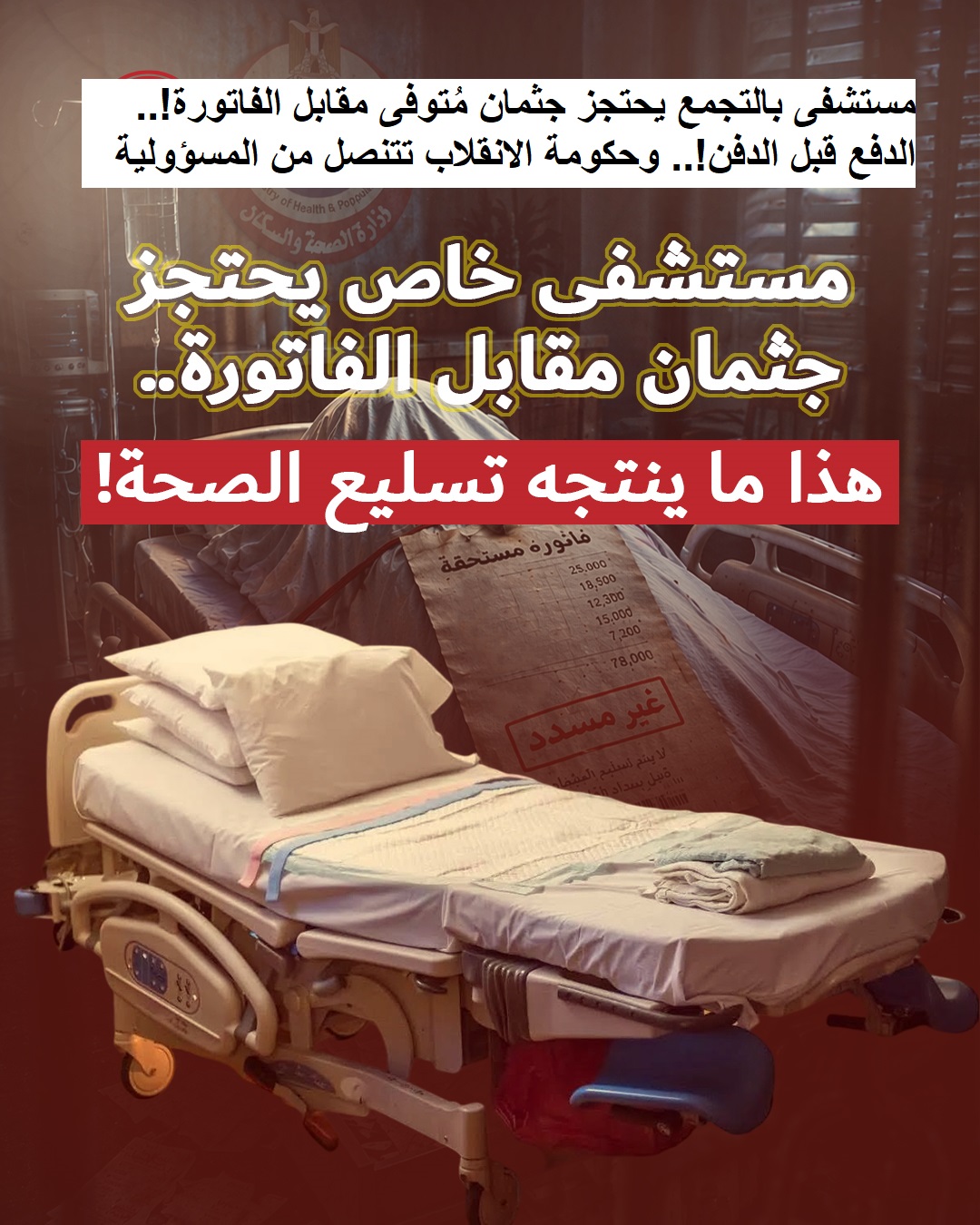 *مستشفى بالتجمع يحتجز جثمان مُتوفى مقابل الفاتورة وحكومة الانقلاب تتنصل من المسؤولية