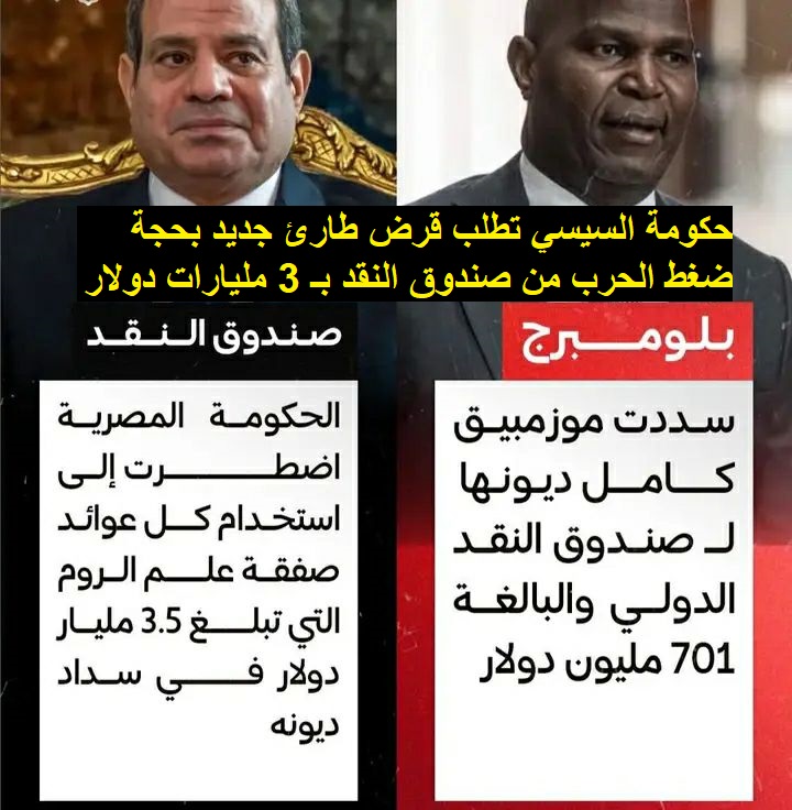 حكومة السيسي تطلب قرض طارئ جديد بحجة ضغط الحرب من صندوق النقد بـ 3 مليارات دولار .. الجمعة 10 أبريل 2026.. مستشفى بالتجمع يحتجز جثمان مُتوفى مقابل الفاتورة وحكومة الانقلاب تتنصل من المسؤولية