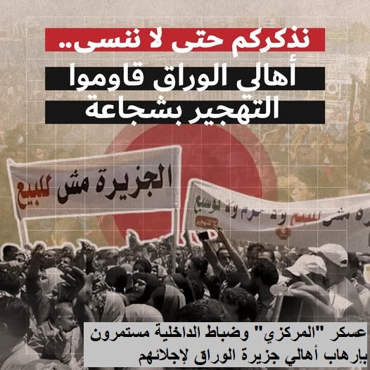 *عساكر “المركزي” وضباط الداخلية مستمرون بإرهاب أهالي جزيرة الوراق لإجلائهم